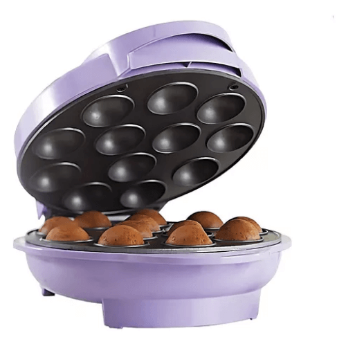 La potente máquina para hacer cake pops antiadherente Brentwood TS-254 de 1000 vatios hornea 12 cake pops perfectos en solo 4 minutos. Cake pops se deslizan directamente fuera de las placas antiadherentes fáciles de limpiar. Prácticas luces indicadoras de encendido/calentamiento. Se almacena en posición vertical para un almacenamiento compacto. Cuenta con apagado de seguridad contra sobrecalentamiento.