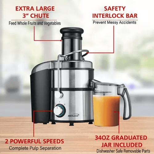 El extractor de jugos BRENTWOOD® extrae lo mejor de la innovación. Cuenta con prácticamente todos los beneficios que te gustaría tener en un solo extractor, e inclusive más. Su boca de alimentación es dos veces más grande, cuenta con accesorios re movibles y sus dos velocidades + pulso permiten extraer el jugo tanto de ingredientes blandos como duros. Y ahí no queda todo, porque un estilo de vida saludable es tan importante como lo que tienes a tu alcance.